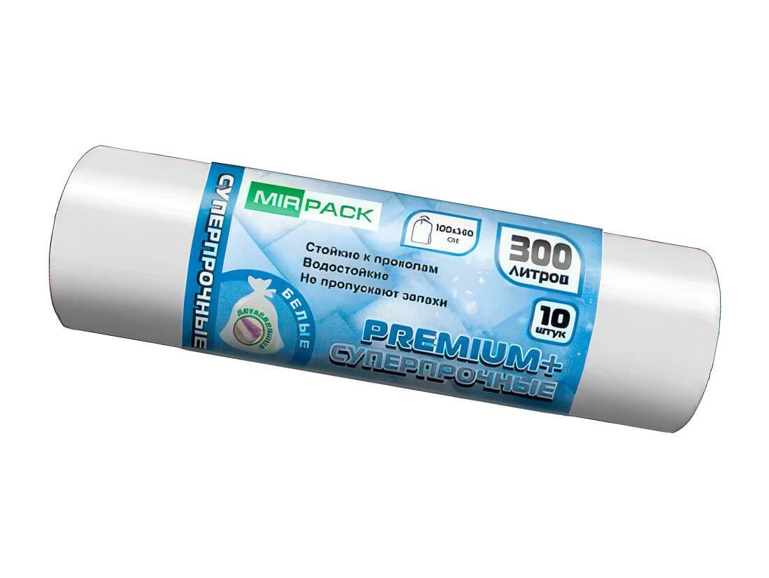 Мешки для мусора 300 л, белые, в рулоне 10 шт., ПВД 70 мкм, 1400х1000 мм, PREMIUM+, 300101602