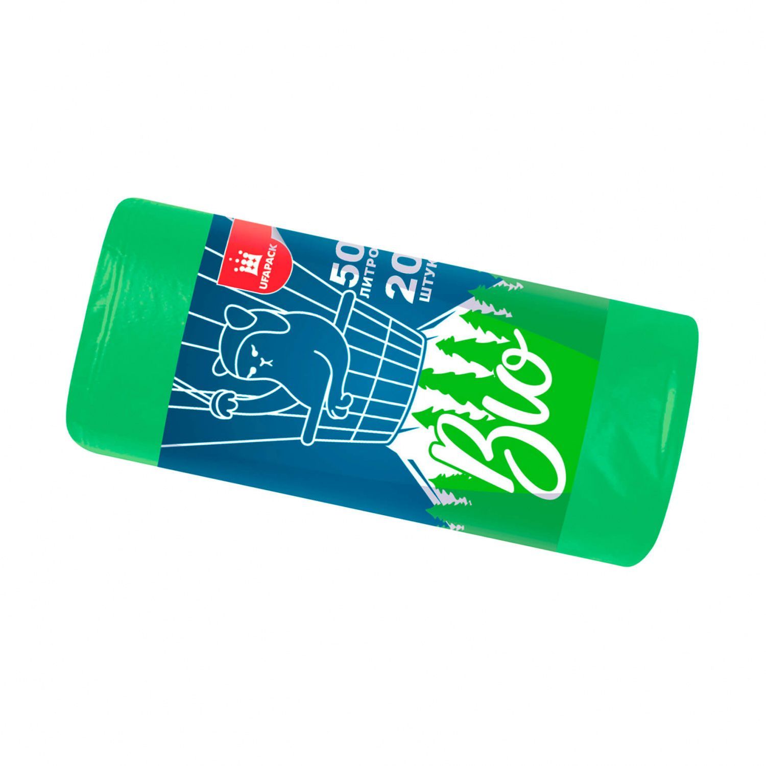 Мешки для мусора 50 л, биоразлагаемые, зеленые, в рулоне 20 шт., ПНД, 9 мкм, 640х540 мм, БИО, МБ2134 (МНБ 50-20ж)
