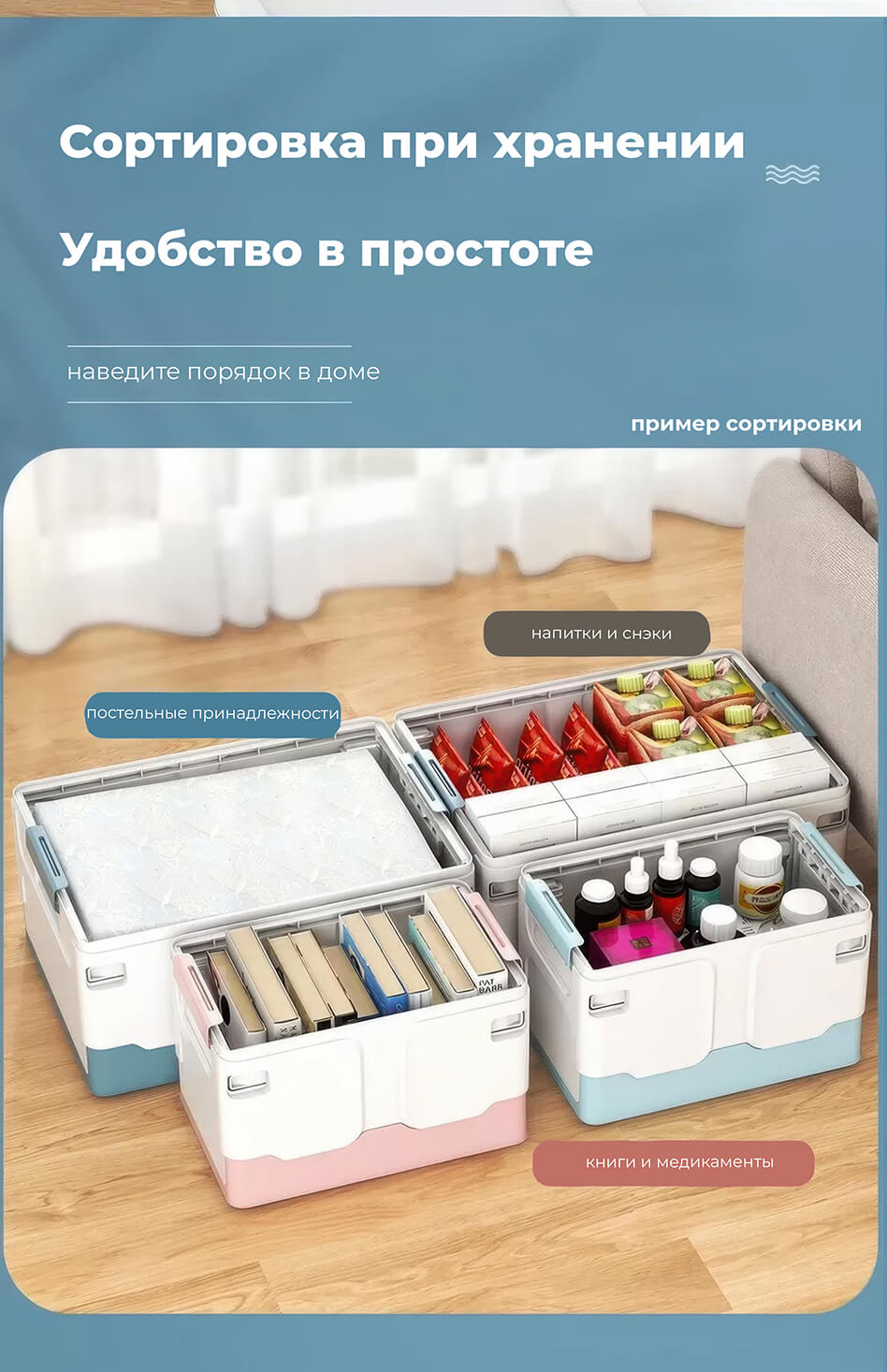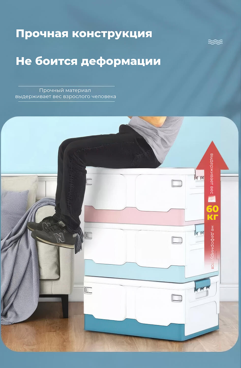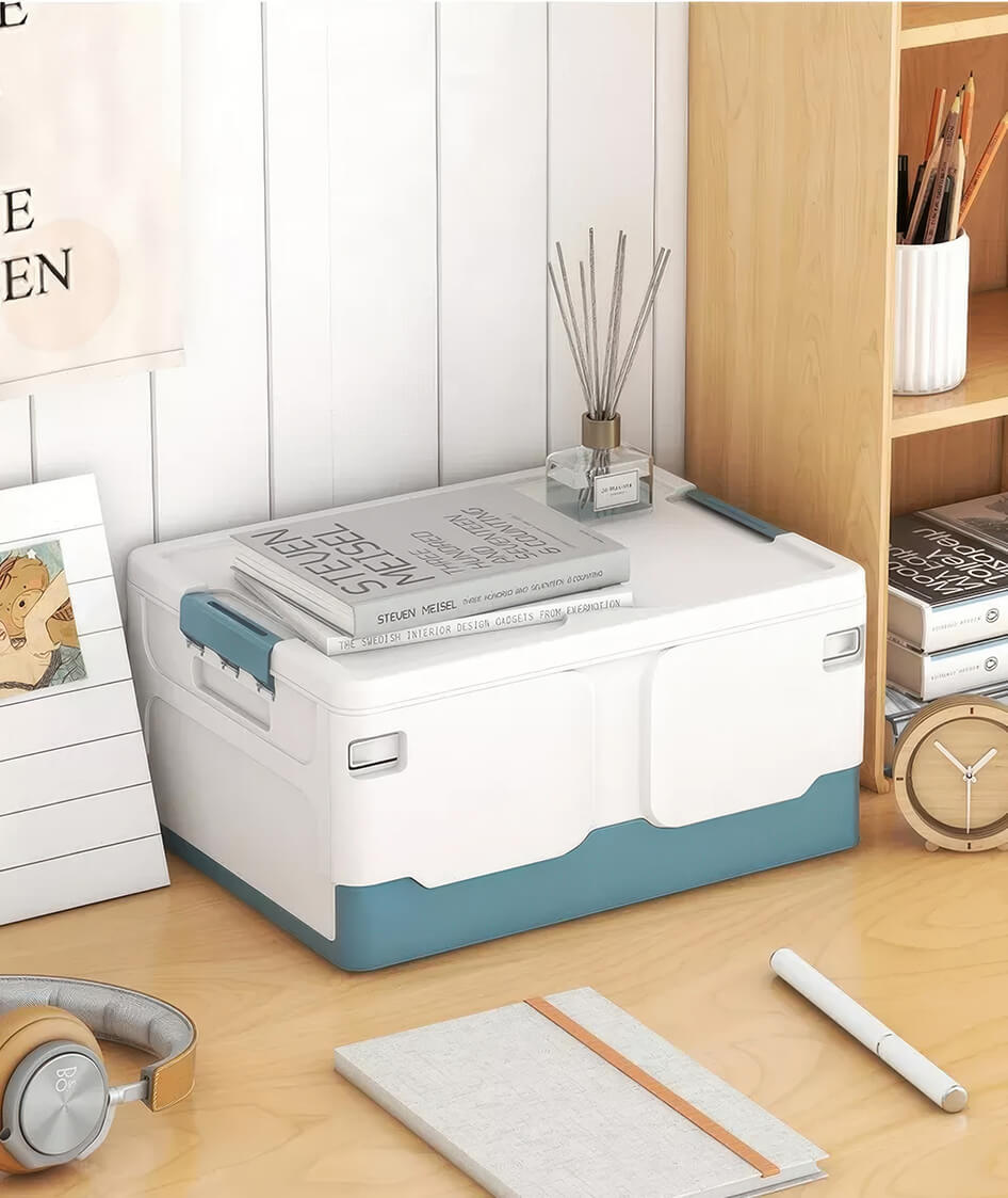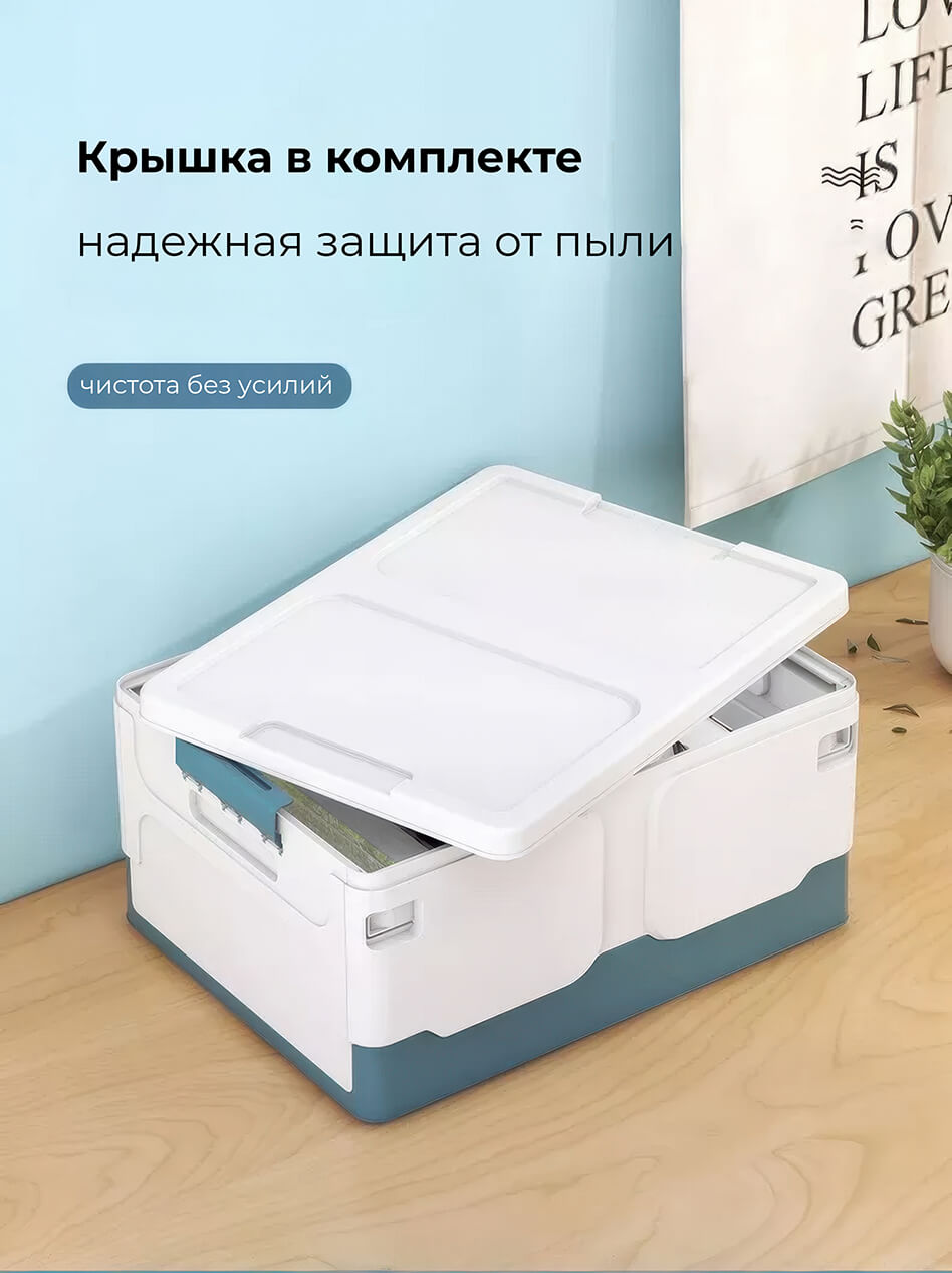 Этот пластиковый складной ящик сочетает в себе прочность, функциональность и современный дизайн. Белые стенки придают ощущение чистоты и простора, а синее дно добавляет глубины и элегантности, создавая гармоничное сочетание. Пластиковый контейнер идеально подходит для хранения одежды, игрушек, документов, мелочей и бытовых принадлежностей.