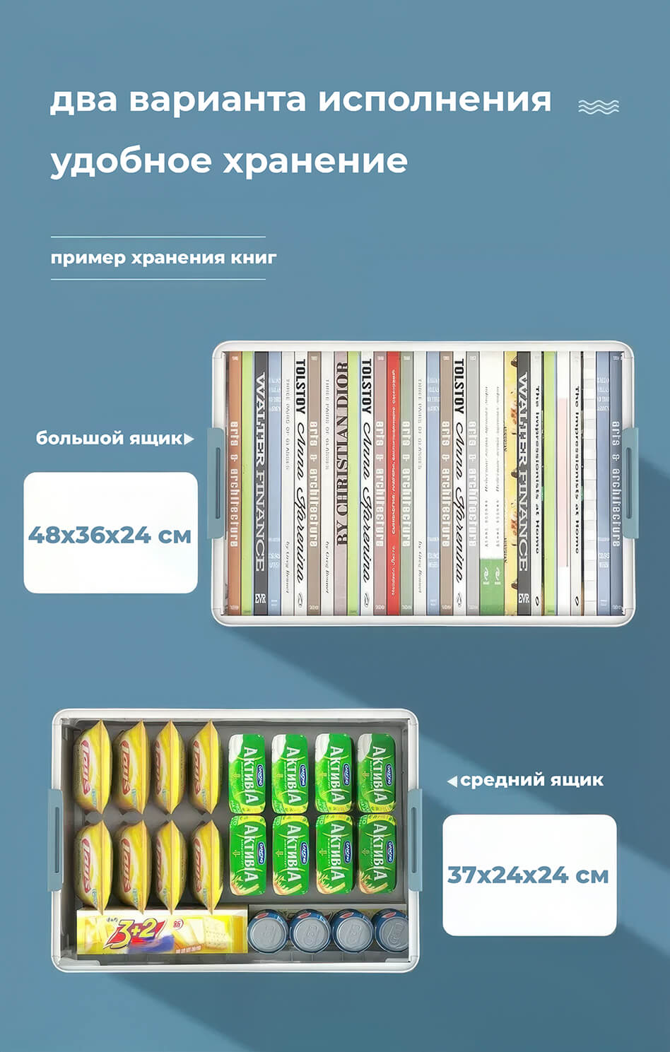 Складной пластиковый ящик 480х360х240 мм, бело-синий – надежное и стильное решение для хранения