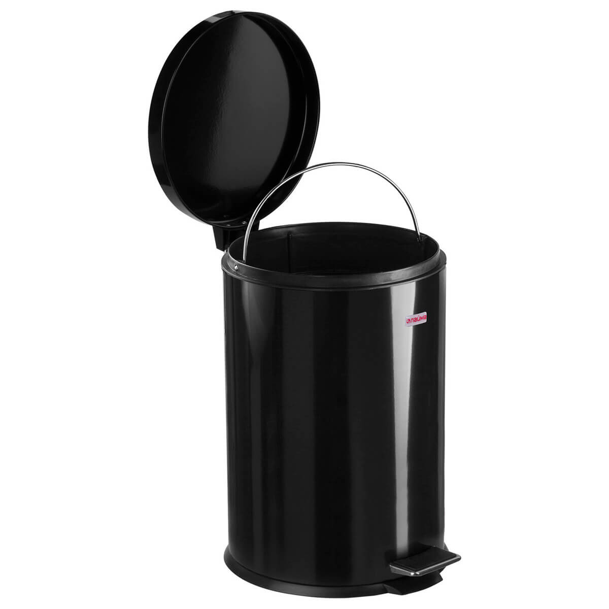 Ведро-контейнер для мусора (урна) с педалью LAIMA Classic, 20 л, черное, глянцевое, металл, со съемным внутренним ведром